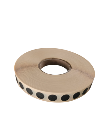 32 00495 - Etiketa kruh 9 mm, Papír, Černá matná, Dutinka 40 mm, 5000 ks/kotouč, Šířka silikonového nosiče 13 mm, Permanentní lepidlo, Průměr kotouče 105 mm