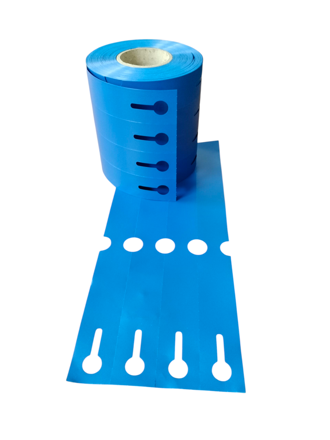 32 00350 - Etiketa zahradnická 25 mm x 254 mm, 4 - Produkce, Polypropylen, Modrá, Dutinka 40 mm, 600 ks/kotouč, Průměr kotouče 96 mm.